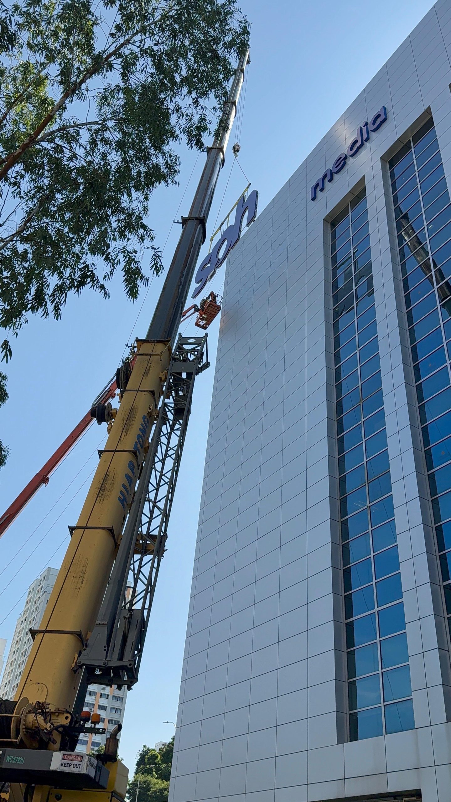 In 2024, we were entrusted with installing the building signage for SPH Media, a project that required both precision and creativity. As Singapore’s largest omnichannel media network, SPH Media Trust has long been a name that commands attention across news, radio, and digital platforms. They operate several major newspapers across the four official languages of Singapore, such as The Straits Times, Lianhe Zaobao, The Business Times, Berita Harian, Tamil Murasu, and Shin Min Daily News.